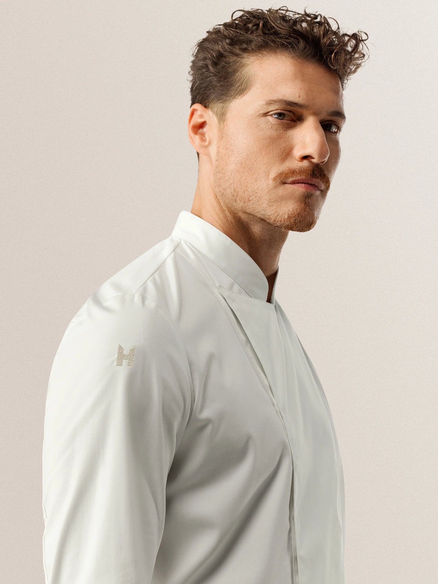 | Produktmerkmale | Gesticktes Le Nouveau Chef H auf dem Ärmel Hoher Stehkragen Lange Ärmel Schürzenschlaufe mit Druckknopf Unsichtbare Druckknöpfe Versteckte Tasche und Tasche am Ärmel |