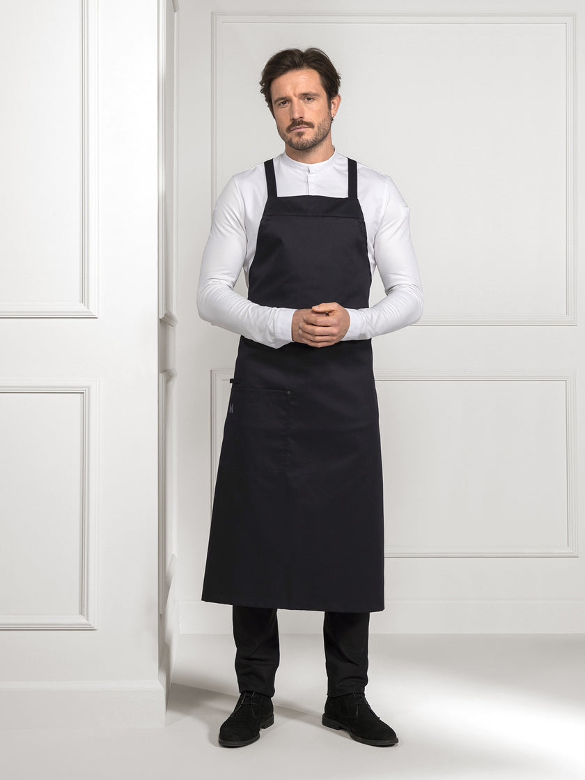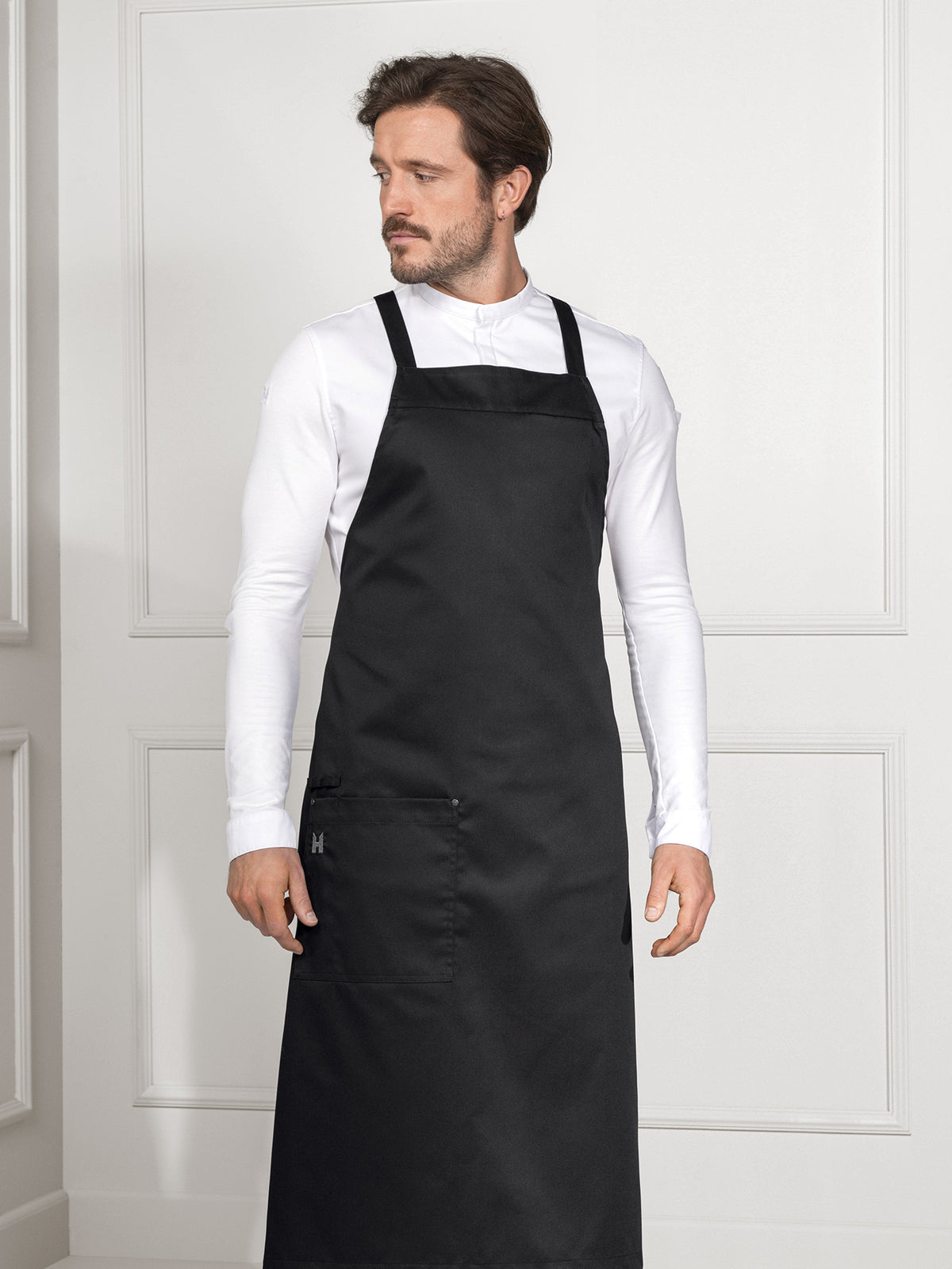 | Caractéristiques | Bretelle croisée au dos Ceinture non amovible Détails discrets de la marque (clous avec H) Poche avant et poche stylo intérieure sur la poitrine Pour le personnel de service et de cuisine Unisexe |