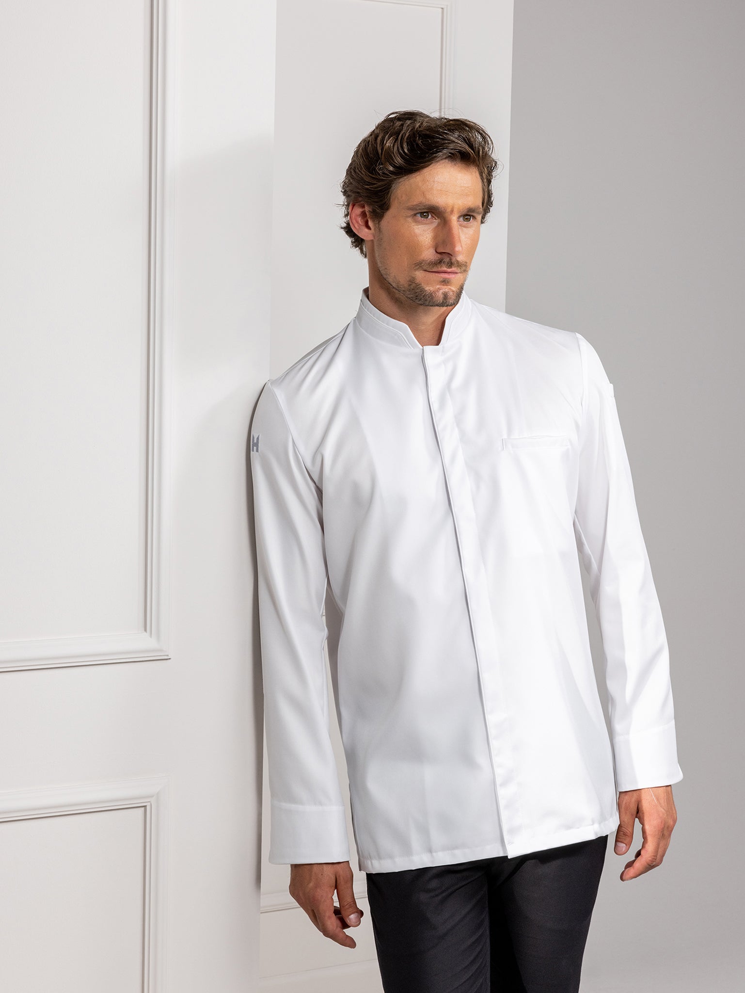 | Caractéristiques | Boucle de tablier avec bouton-pression Boutons pression invisibles Brodé Le Nouveau Chef H sur la manche Col montant haut Poche poitrine et poche stylo sur la manche |