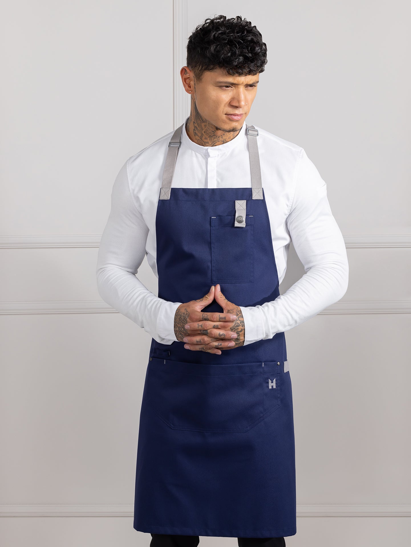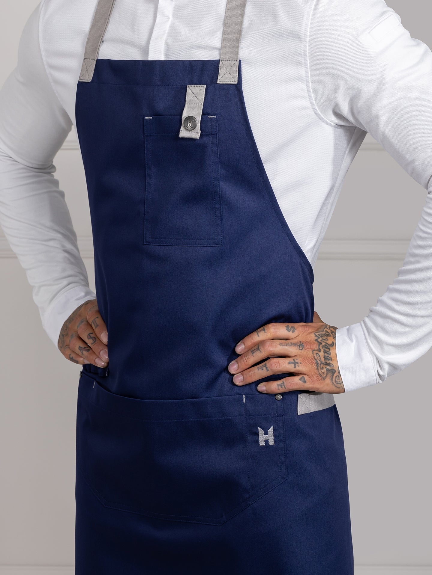 | Caractéristiques | Bande séparée pour torchon de cuisine Brodé Le Nouveau Chef H sur la poche Ceinture non amovible Multiples poches Tour de cou réglable Unisexe |