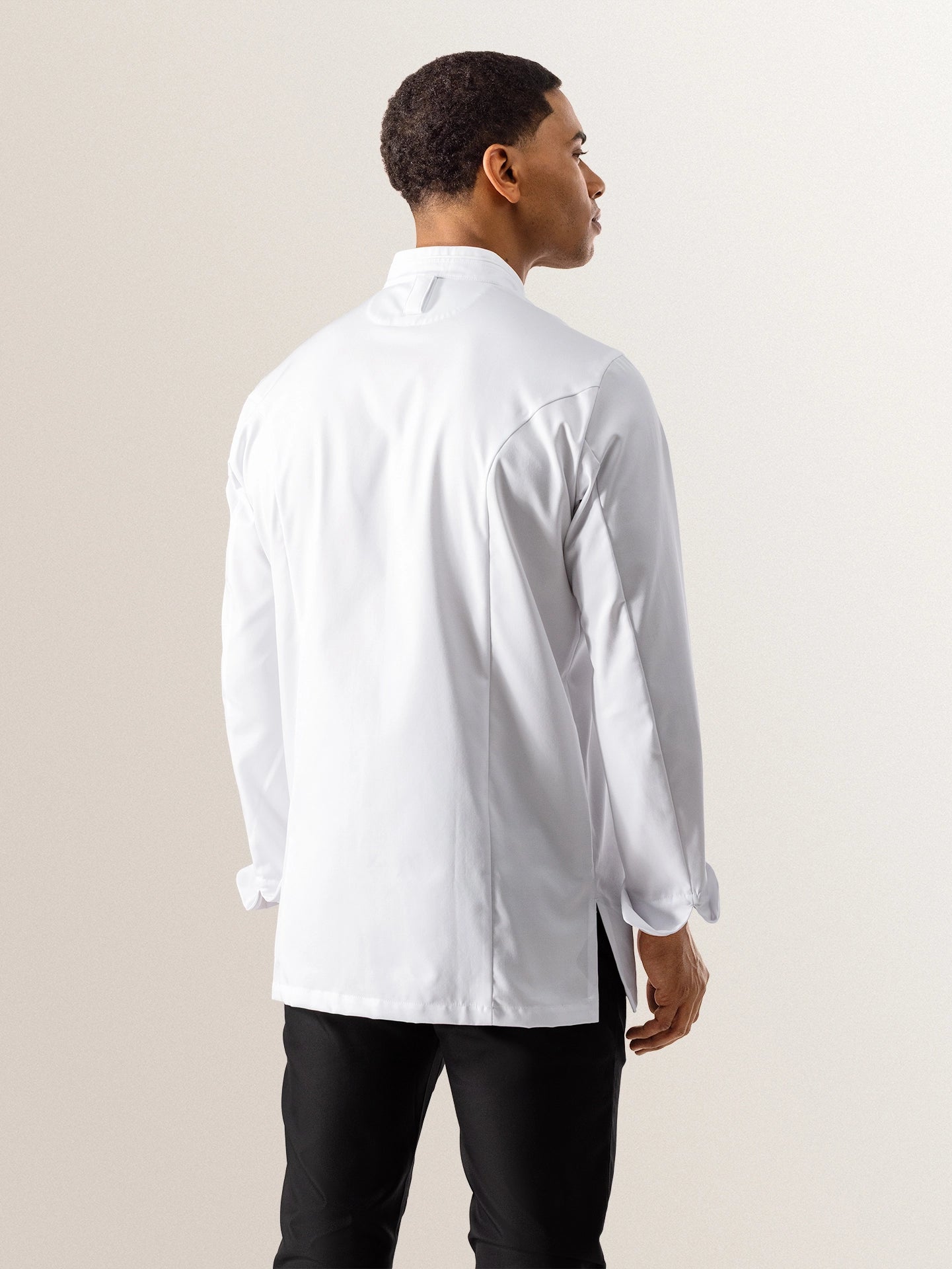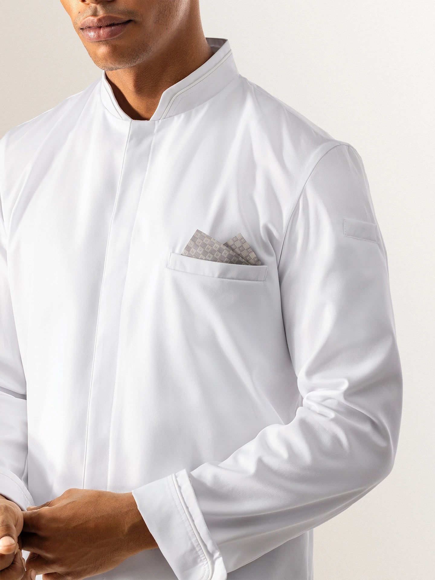 | Caractéristiques | Boucle de tablier avec bouton-pression Boutons pression invisibles Brodé Le Nouveau Chef H sur la manche Col montant haut Poche poitrine et poche stylo sur la manche |